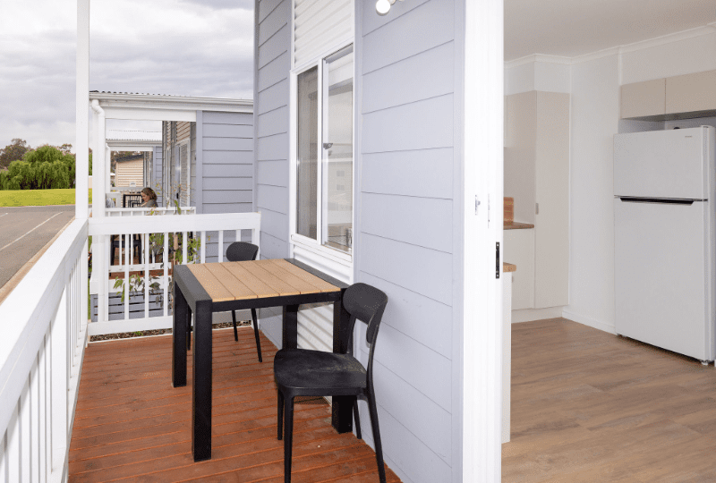 Perfect for up to five guests, our Two-Bedroom Standard Cabin is the ideal choice for your next getaway! In this open-plan cabin, you’ll find a double bed in the main bedroom and a bunk bed and a single bed in the second bedroom. The self-contained kitchen comes fully equipped with a cooktop, microwave, full-sized fridge, and all the crockery, cutlery, and utensils you need. There’s also a small outdoor dining area and a Smart TV in the living area for you, where you can relax while streaming your favourite TV shows and enjoy high-speed internet. The bathroom features a shower, toilet, and vanity, and the cabin is air-conditioned for your comfort. We offer select dog-friendly options—please let us know if you plan to bring a dog, as additional charges may apply.