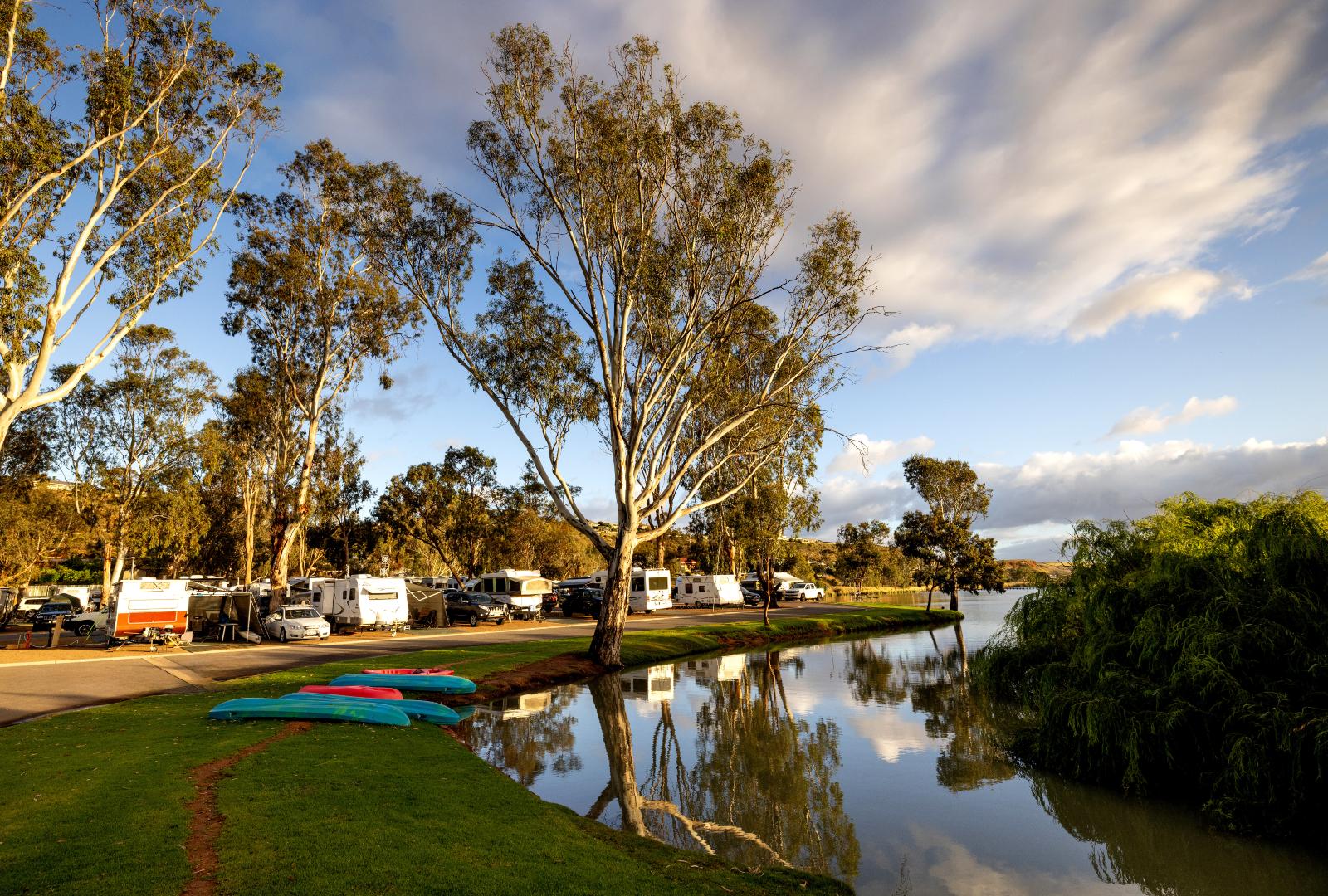 Our Waterview Sites are perfect for all types of travelers, whether you're in a caravan, motorhome, camper trailer, tent, or big rig. Nestled along the banks of the Murray River, these sites are conveniently located near the amenities block, camp kitchen, and other facilities. We offer dog-friendly options—please let us know if you’ll be bringing your dog as additional charges may apply. *Please note that the surroundings of the sites may differ from the images shown.